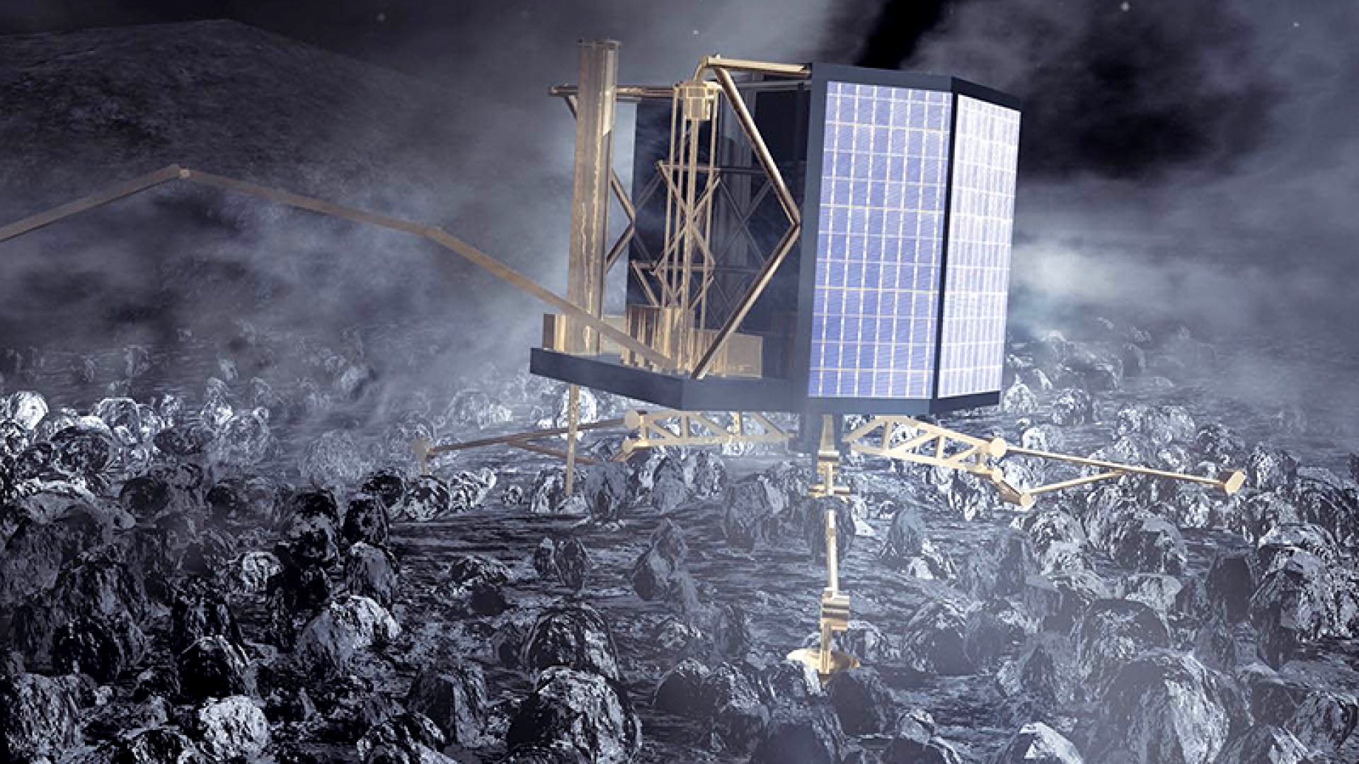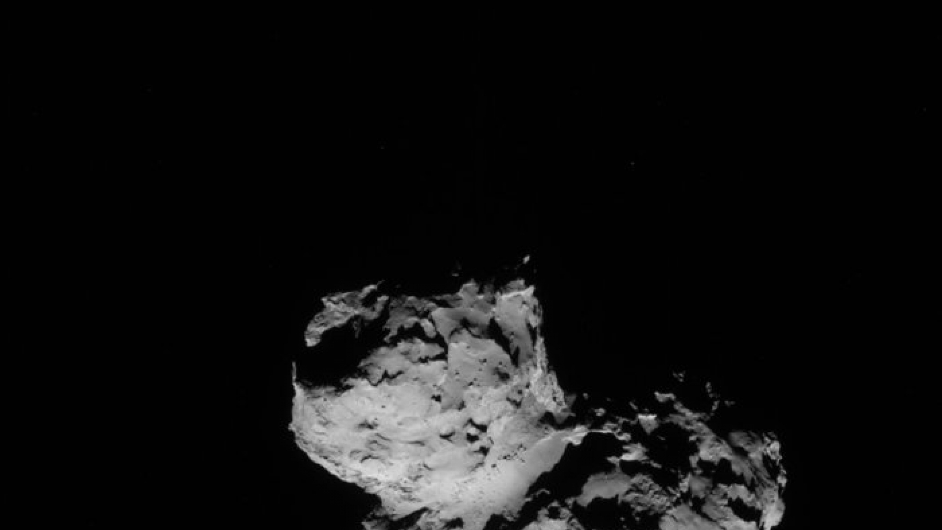 Geplant ist, dass die Landeeinheit Philae der ESA-Mission Rosetta am 2. November auf dem "Kopf" des Kometen aufsetzt. Denn dieser ist fast zweigeteilt mit einem dickeren und einem kleineren Ende. Der Komet 67P/Churyumov-Gerasimenko ist zurzeit rund 400 Millionen Kilometer von der Sonne entfernt, beginnt aber bereits, durch ihre Wärme aktiv zu werden: Aus seinem Kern aus Eis, Staub und Gesteinsbrocken treten schon Gase aus, die in Aufnahmen der Rosetta-Sonde als feine Fontänen erkennbar sind. Diese kometentypischen Ausgasungen sind es auch, die bei noch größerer Sonnennähe seinen Schweif entstehen lassen.
