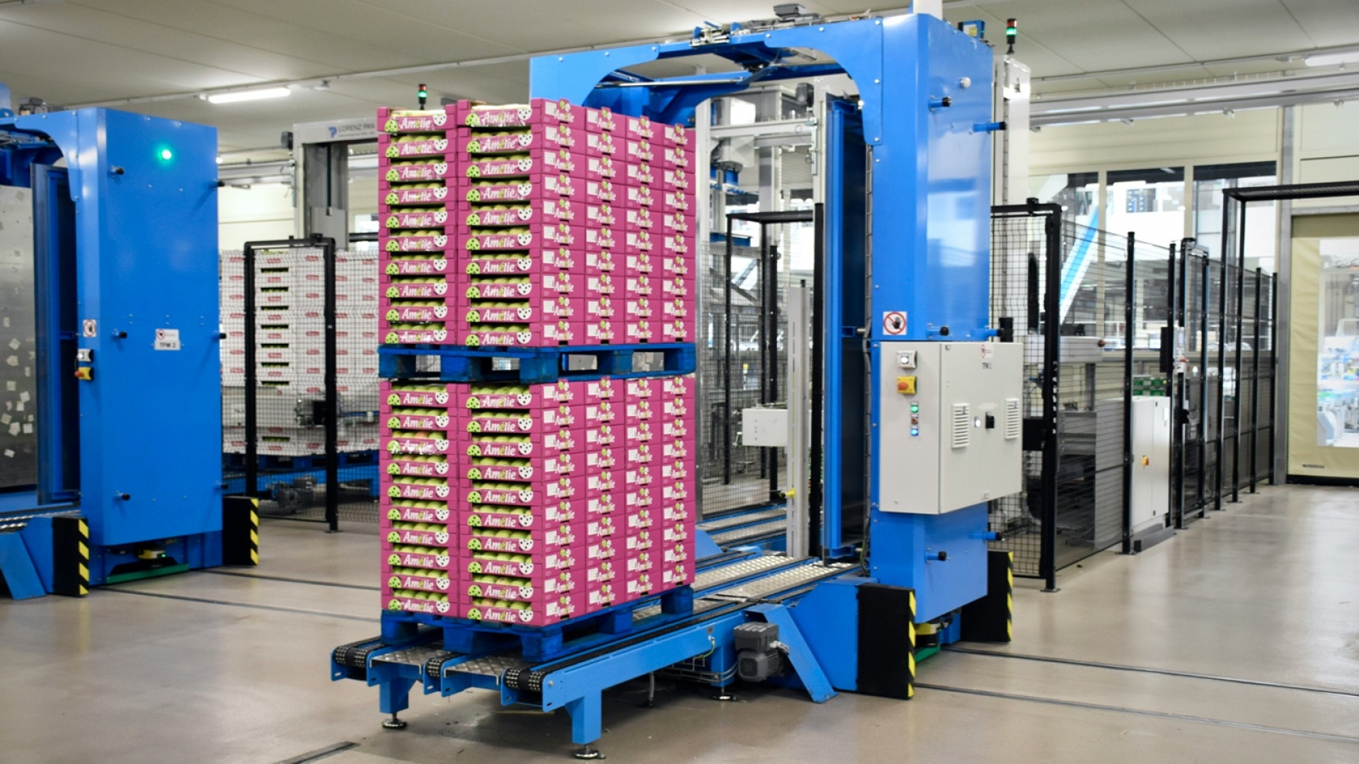 In Kombination mit einer geeigneten Palettieranlage wird zudem sichergestellt, dass die Ware optimal positioniert und palettiert wird. Dies sorgt für ein sauberes Lagenbild und die effizientere Abwicklung nachfolgender Arbeitsschritte – darunter das raschere Ablesen von Barcodes und der sichere Weitertransport der ordentlich gestapelten Paletten.