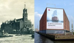 Im Jahr 2003 kam schließlich die Idee auf, auf dem Kaispeicher ein Konzertgebäude zu bauen. Die Schweizer Star-Architekten Herzog & de Meuron lieferten dafür einen spektakulären Entwurf. Von diesem Architektenduo stammen unter anderem das Olympiastadion von Peking – das "Vogelnest", die Allianzarena in München und die Galerie Tate Modern in London. Ihr Entwurf sah vor, das verglaste Konzertgebäude mit integriertem Hotel, Wohnungen und anderen Komponenten einfach auf den Kaispeicher aufzusetzen.