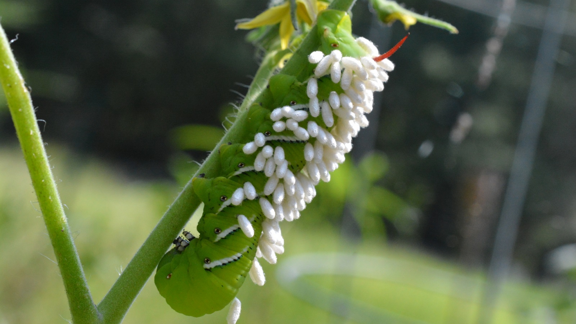 Auf den ersten Blick könnte man meinen, Pflanzen wären ein leichtes Opfer für hungrige Raupen und andere Schädlinge. Doch der Schein trügt. Pflanzen sind durchaus wehrhaft. Einige verteidigen sich mit Stacheln und Dornen, andere sind giftig. Doch es gibt noch einen weiteren Trick: Wenn sich eine Pflanze nicht allein gegen die Schädlinge zur Wehr setzen kann, ruft sie prompt Verstärkung herbei. Diese Taktik verfolgt zum Beispiel der wilde Tabak, der unter anderem im Südwesten der USA wächst. Merkt er, dass die Larven des Tomatenschwärmers gerade an seinen Blättern ein Buffet veranstalten, setzt er spezielle chemische Duftstoffe frei. Damit lockt der Tabak gezielt räuberische Insekten wie Raubwanzen und Wespen an, die die lästigen Raupen dann verspeisen.