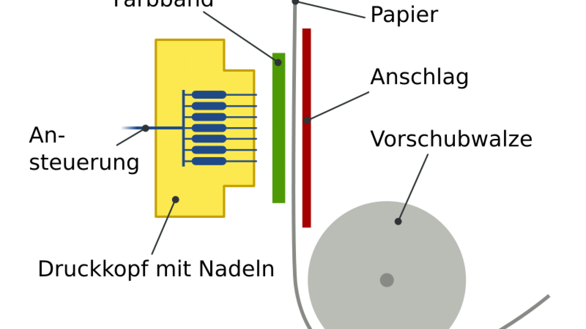 Wird das Farbband schneller fransig, sollte der Abstand zur Trommel überprüft werden. Dieser lässt sich meist mit einer Stellschraube anpassen.