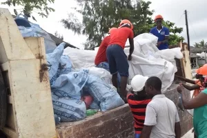 Säckeweise Müll kam in Kenia bei einer Strand-Aufräumaktion zusammen.