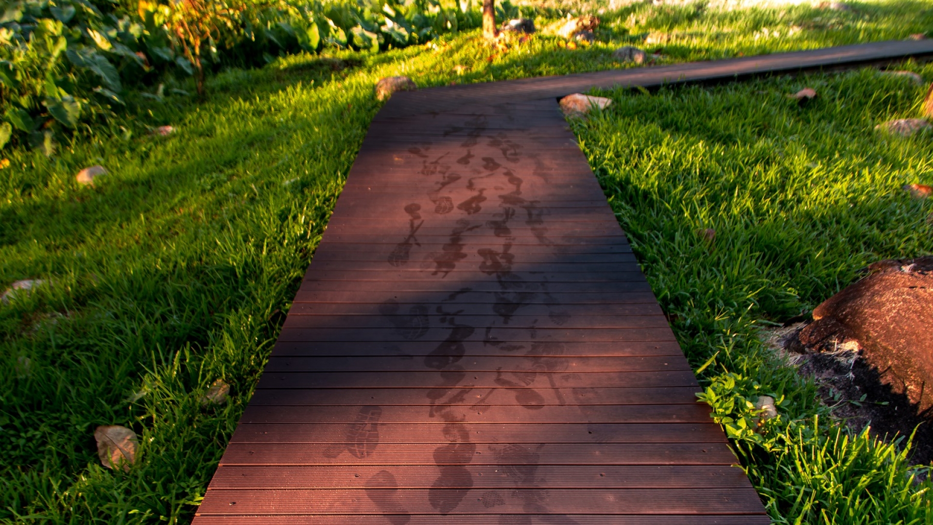 Die Infrastruktur des Gartens kann mithilfe von Holz wunderbar organisiert werden: Stege, Wege oder kleine Brücken lassen sich damit befestigen und konstruieren. Wenn es einen Teich gibt, und es die Größe zulässt, ist ein Holzweg, der dahinführt, und mittels einer kleinen Holzbrücke über den Teich hinübergeht und schlussendlich einen Rundweg entstehen lässt, eine gute Lösung.