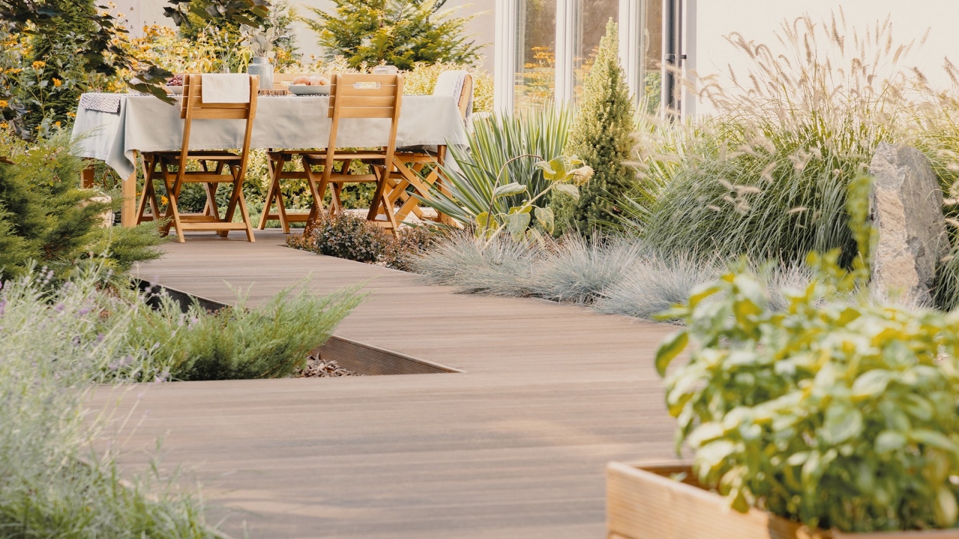Integration von Holz im Garten