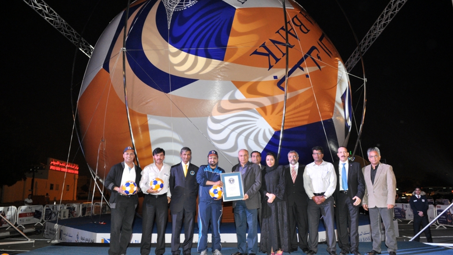 Der größte Fußball wurde 2013 in Qatar präsentiert - Werbung für den 2022 dort stattfindenden FIFA World Cup.