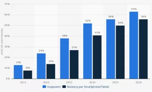 Bereits 56% der Internetnutzer sind mit mobilen Endgeräten im Web tätig. Somit nutzen mehr als die Hälfte aller Deutschen das Web über Smartphones oder Tablets. Durch eine nicht mobil-optimierte Webseiten, wird folglich eine sehr große Zielgruppe ausgeschlossen und dieser Fall zeigt, wie essentiell ein mobil-optimierter Internetauftritt für ein Unternehmen wirklich ist.