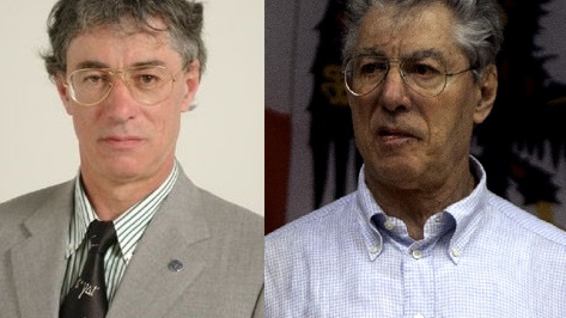 Umberto Bossi vor (l.; 1994) und nach (r.; 2012) dem Hirnschlag, der eine Stimmveränderung verursachte.