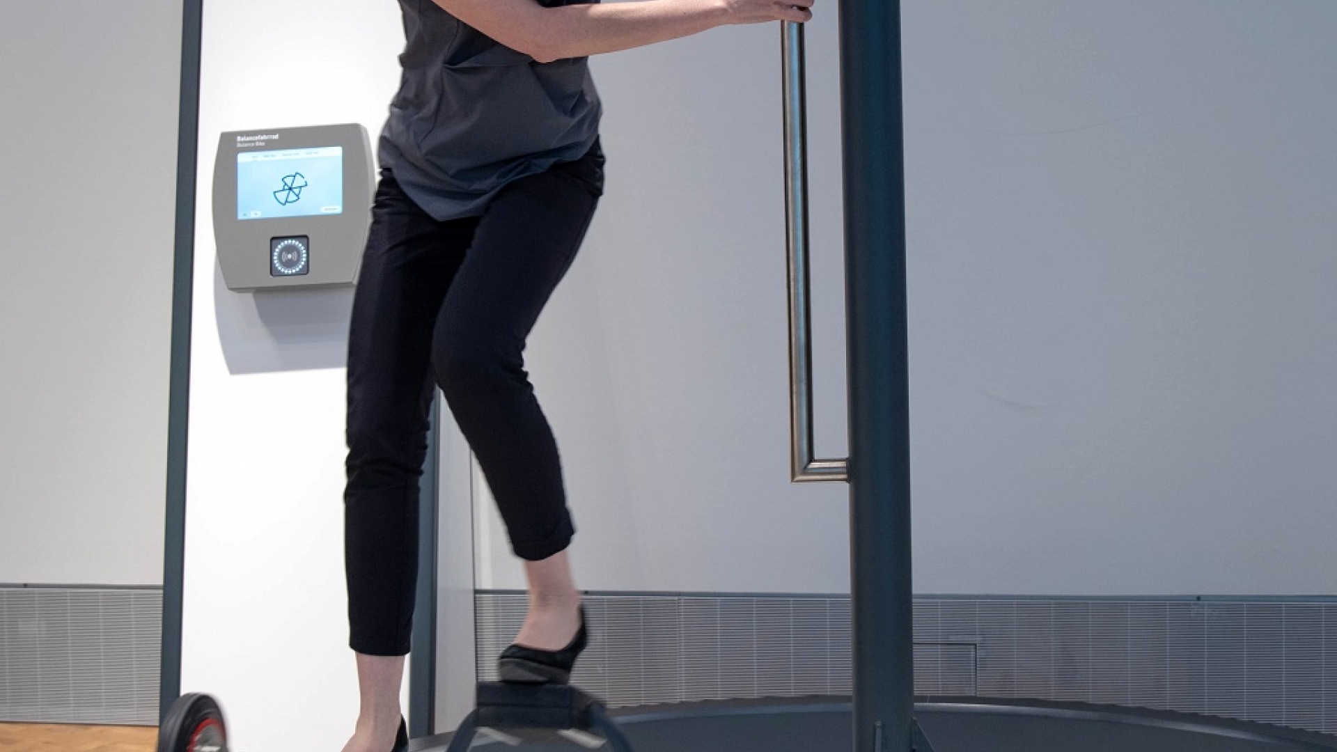 Katrin Hille zeigt auf einem der 24 Talentexponate ihre Begabung, Balance halten zu können.