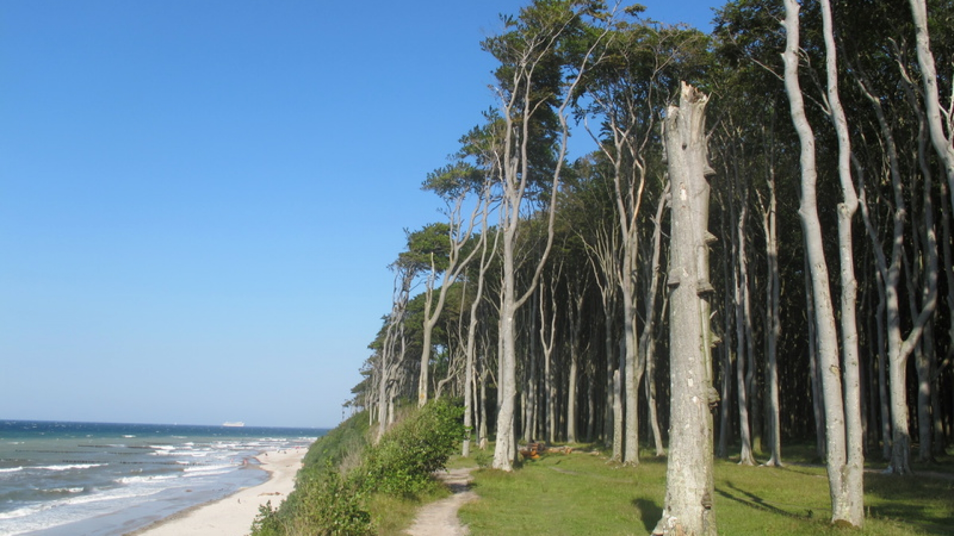 Der wildromantische und nahezu unberührte Darßer Weststrand ist nur zu Fuß, mit dem Rad oder auf dem Rücken eines Pferdes zu erreichen. Doch die Anstrengungen lohnen sich, denn vor Ort erwartet die Urlauber feiner Sandstrand, glasklares Wasser sowie eine von Wind und Wetter bizarr geformte Natur.