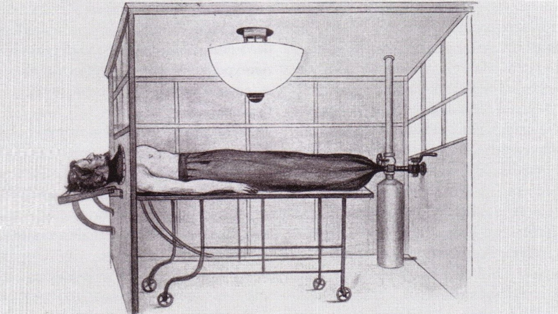 Das Problem: In der Lunge herrscht Unterdruck, damit sie sich beim Einatmen ausdehnen kann. Öffnen Chirurgen den Brustkorb, gleicht sich dieser Unterdruck jedoch mit dem äußeren Luftdruck aus – die Lunge fällt in sich zusammen und der Patient kann nicht mehr selbstständig atmen. Operationen am Brustkorb waren deswegen bislang nicht möglich. Um das Problem zu lösen, entwickelt Sauerbruch eine Unterdruckkammer: In ihr befinden sich der Operationstisch, Apparaturen für die Erzeugung des Unterdrucks und genügend Platz für Chirurg und Operationsassistenten. Lediglich der Kopf des Patienten ragt aus ihr heraus.