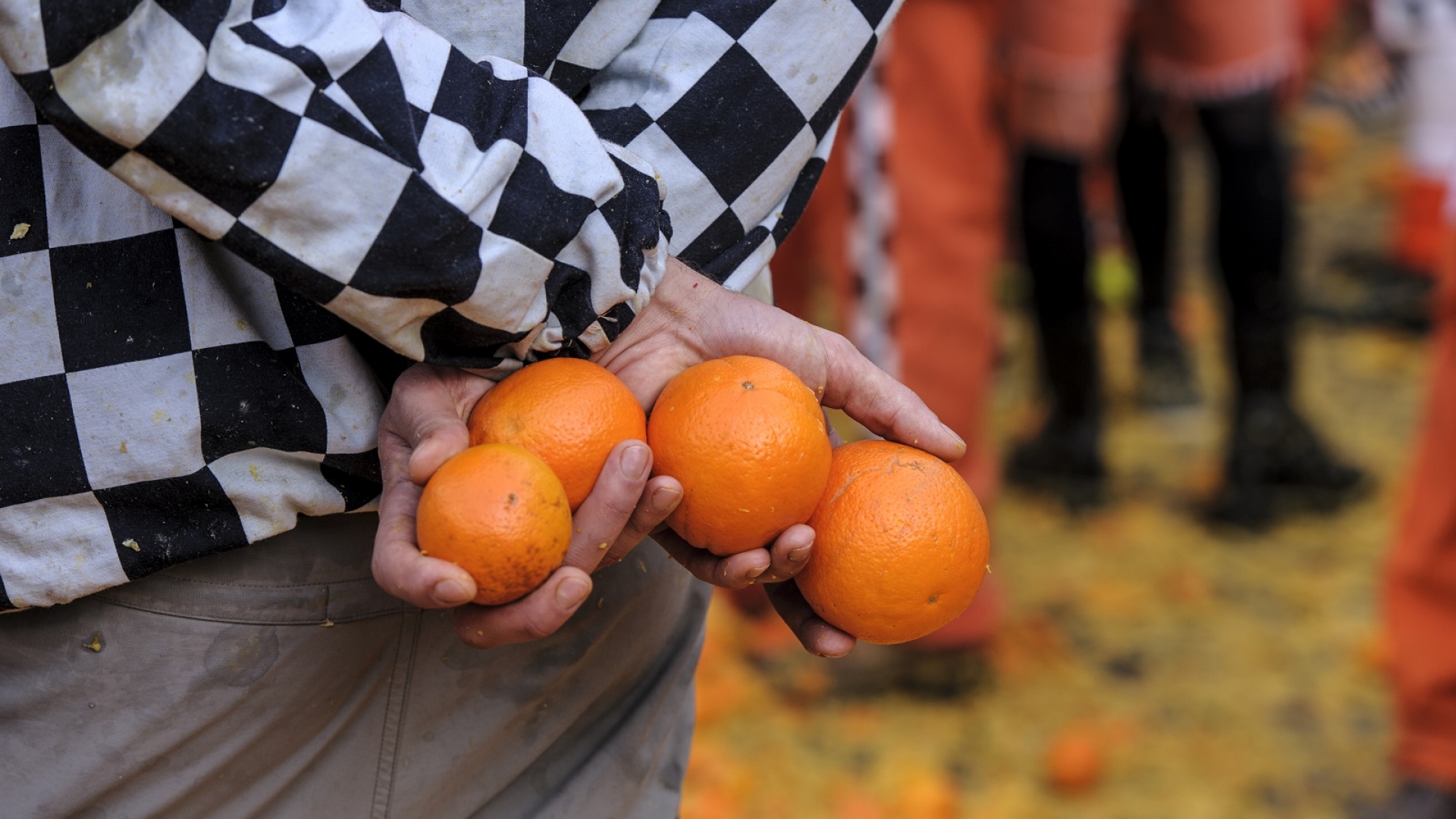Auch in Italien kommen die Menschen an Karneval zusammen, allerdings nicht zum Schlittenfahren, sondern mancherorts zum „Kämpfen“. In der Stadt Ivrea nahe Turin findet alljährlich an Rosenmontag eine große Orangenschlacht statt. Mehrere tausend Menschen, unterteilt in verschiedene Teams, bewerfen sich dabei gegenseitig mit Orangen. Damit der Nachschub nicht ausgeht, werden vorher tonnenweise Apfelsinen extra aus anderen Teilen Italiens herbeigebracht.