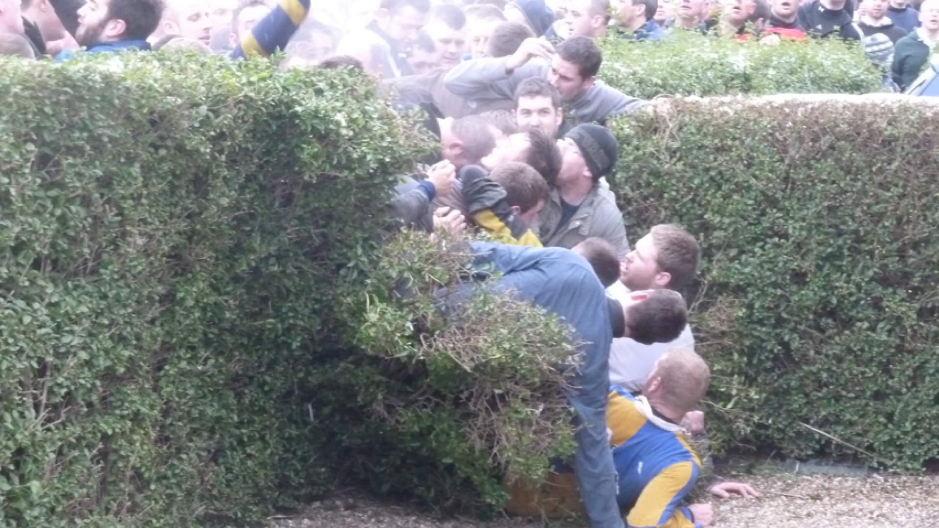 Wer in welchem Team spielt, hängt davon ab, wer diesseits oder jenseits des Henmore Rivers lebt, der die Stadt teilt. Die Tore stehen unmittelbar am Ufer des Flusses, doch das Spielfeld erstreckt sich fast über die komplette Stadt. Der Ball ist stolze vier Kilogramm schwer und mit Kork und Sägespänen statt mit Luft gefüllt. Kein Wunder, dass im hitzigen Gefecht so einiges zu Bruch geht und viele Ladeninhaber vorsorglich ihre Schaufenster mit Brettern schützen.
