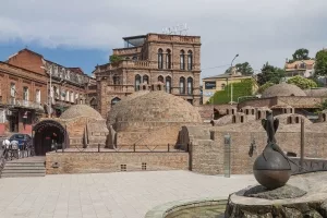 Im Bäderviertel der Altstadt erheben sich markante Ziegelkuppeln aus dem Boden: Darunter befinden sich Schwefelbäder, die aus heißen Quellen unterhalb der Stadt gespeist werden. Nicht weit entfernt, vorbei an Saftständen, befinden sich der Botanische Garten und die Narikala-Festung, deren uralte, halb verfallene Mauern über der Stadt thronen.