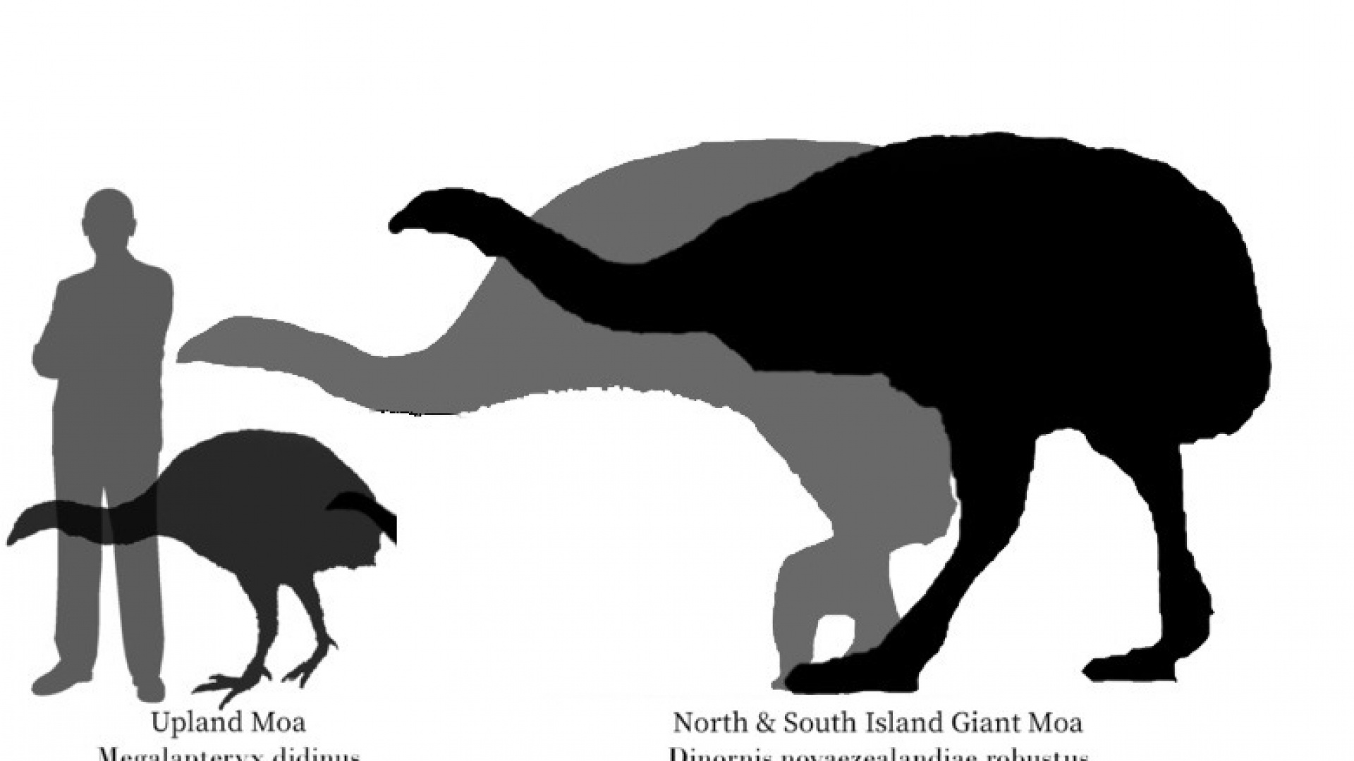 Kleine Tiere entwickeln auf Inseln manchmal deutlich größere Körperformen als auf dem Festland – Beispiele von insellebenden Giganten reichen bis weit in die Vergangenheit zurück: Beispielsweise zählte der heute ausgestorbene Moa mit bis zu zweieinhalb Metern Größe zu den Riesen unter den Vögeln. Die flugunfähigen Moas waren einst die dominierende Tierart in Neuseeland, starben jedoch innerhalb kürzester Zeit aus, nachdem Ende des !3. Jahrhunderts die ersten Menschen die Insel erreichten und Jagd auf die Giganten machten.