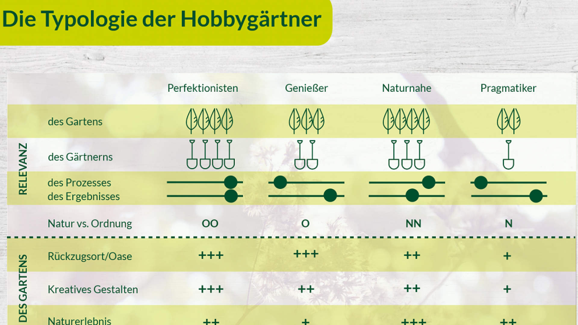 Falls Sie sich nicht ganz sicher sind, zu welcher dieser Gruppen sie sich selbst zählen sollen, können sie in einem Test herausfinden, welcher Gartentyp am besten zu ihnen passen könnte.