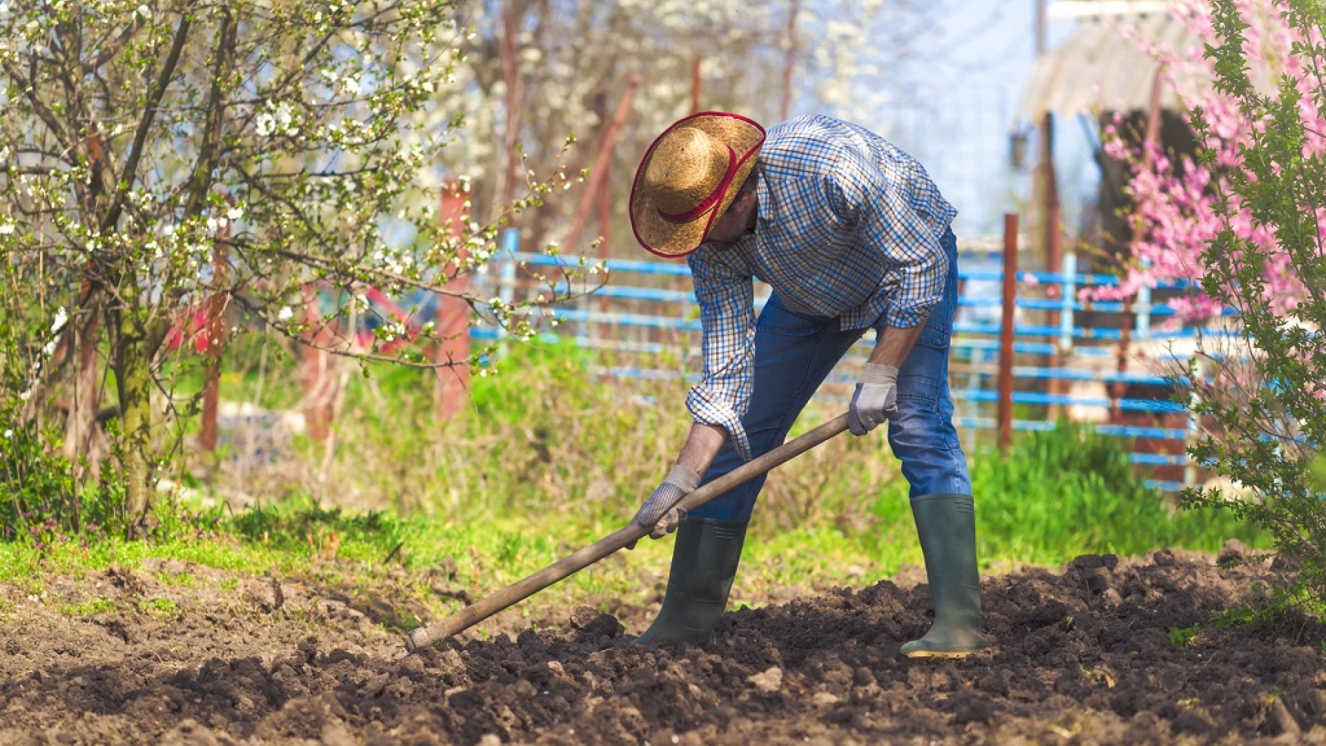 Je nach Voraussetzungen bedeutet das eine nicht unerhebliche Kraftanstrengung, den Boden erst einmal umzugraben: Rasen muss dafür gegebenenfalls entfernt werden, am besten mitsamt den Wurzeln. Sehr fester Boden wird bis zu einer Tiefe von zwei Spatenlängen umgegraben – auf diese Weise können aber auch gleich größere Steine und das Unkraut mit Wurzeln entfernt werden. Für das Auflockern verwenden Sie eine Schlaghacke.
