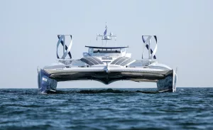 Der Katamaran, der ohne Ausstoß von Treibhausgasen und Feinstaub fährt, versteht sich als Botschafter für den Klimaschutz. Im Juni 2017 ist er im Rahmen eines von der EU mitgeförderten Projekts zu einer sechsjährigen Weltumseglung mit Stationen in 50 Ländern aufgebrochen, die ihn nun auch zum Hafengeburtstag führt.