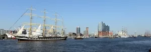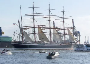 Mit Geschwindigkeit überzeugt dagegen die russische Mir. Sie gilt als schnellster Großsegler der Welt und hat sich diesen Ruf bei zahlreichen Großsegler-Regatten vor allem in den 1990er Jahren erworben. Das 108 Meter lange Drei-Mast-Vollschiff gehört seit vielen Jahren zu den treuen Stammgästen auf dem Hamburger Hafenfest.