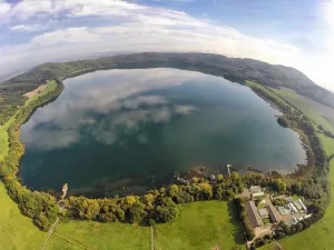 Dieses Areal, das sich heute malerisch gibt, war vor 12.900 Jahren „Dantes Inferno“. Statt des Sees stand hier ein Vulkan, der in einem gewaltigen Ausbruch seinen Inhalt bis nach Südengland schleuderte. Das Gebiet ringsherum wurde meterhoch bedeckt – darunter auch mit jenem Bims. Er entstand, als Lava mit Wasserstoff und Kohlendioxid in Berührung kam und dabei regelrecht aufschäumte. Dabei bildeten sich feste Brocken, die von Millionen feiner Poren durchzogen werden – und just die sind wegen ihrer hohen Dämmwirkung dafür verantwortlich, dass Bims-Mauersteine so beliebt sind.