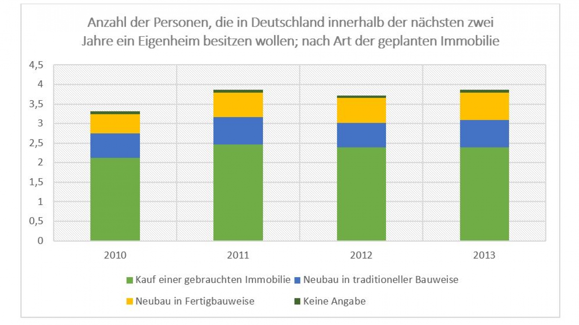 Ein Haus mit Vorgarten und weißem Gartenzaun - ein Traum, der altbacken klingt, heutzutage aber immer noch beliebt ist. Laut Statista planten im Jahr 2013 2,39 Millionen Personen, innerhalb der nächsten zwei Jahre eine gebrauchte Immobilie zu kaufen; 1,4 Personen wollen einen Neubau kaufen und diesen entweder in traditioneller oder in Fertigbauweise realisieren.