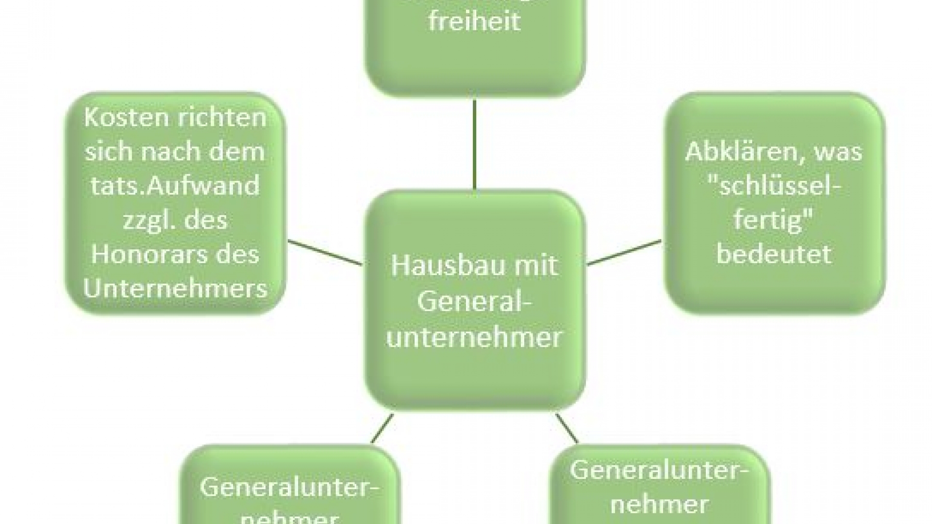 Mit einem Generalunternehmer ist es Aufgabe des Bauherrn, zusätzlich einen Architekten zu engagieren. Mit diesem plant er das Haus, das der Unternehmer baut und schlüsselfertig übergibt. Die Möglichkeiten der Gestaltung sind daher auch in diesem Fall sehr groß. Die Immobilie kann perfekt an die eigenen Bedürfnisse angepasst werden und der Häuslebauer muss dafür nicht einmal selbst mit auf dem Bau helfen. Die Verantwortung des Bauherrn ist daher relativ gering - der Generalunternehmer und der Architekt sorgen dafür, dass das Haus errichtet wird. Schlüsselfertige Übergabe bedeutet allerdings nicht unbedingt, dass das Haus danach sofort bezogen werden kann. Hier sind die Leistungen des Anbieters genau zu betrachten - einige verstehen unter diesem Begriff den reinen Rohbau des Hauses, andere übernehmen den Innenausbau mit. Rohbau bedeutet, dass die äußere Struktur inklusive Dach vorhanden ist, Fenster, Fassadenverkleidung, Installationsarbeiten und die Boden- und Wandgestaltung aber noch fehlen. Je nach Willen und Erfahrung des Bauherrn, Teile des Innenausbaus selbst zu erledigen, ist ein Anbieter auszuwählen.