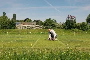 Beim Strapazierrasen imitiert eine Maschine, genannt Scherstollenwalze, die Nutzung, drückt also künstlich die Fußballstollen in den Rasen. Ein Fußballspiel ist für den Rasen eine ziemliche Herausforderung, Löcher werden reingehackt und die Rasennarbe reißt raus. Nach dem Spiel sieht ein Rasen dadurch ziemlich lädiert aus. Die strapazierfähigsten Sorten mit den besten Noten werden dann in spezielle Sportrasen-Mischungen gegeben.