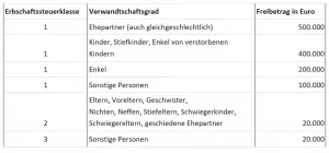 “Der Immobilienwert wird bei den Freibeträgen häufig unterschätzt”, so Prokurist und Vertriebsleiter Juri Kaiser. Die Erbschaftssteuerfreibeträge sind bundesweit identisch, die Immobilienwerte nicht, gibt der Berlinkenner Kaiser zu bedenken. Während Großeltern in Paderborn nicht befürchten müssen, dass für die Enkel bei dem Immobilienübertrag Erbschaftssteuer anfällt, kann das in Berlin bei den rasant gestiegenen Immobilienpreisen schon wieder anders aussehen. Kaiser verweist in diesem Zusammenhang explizit auf die limitierten Freibeträge. Hier eine Übersicht: