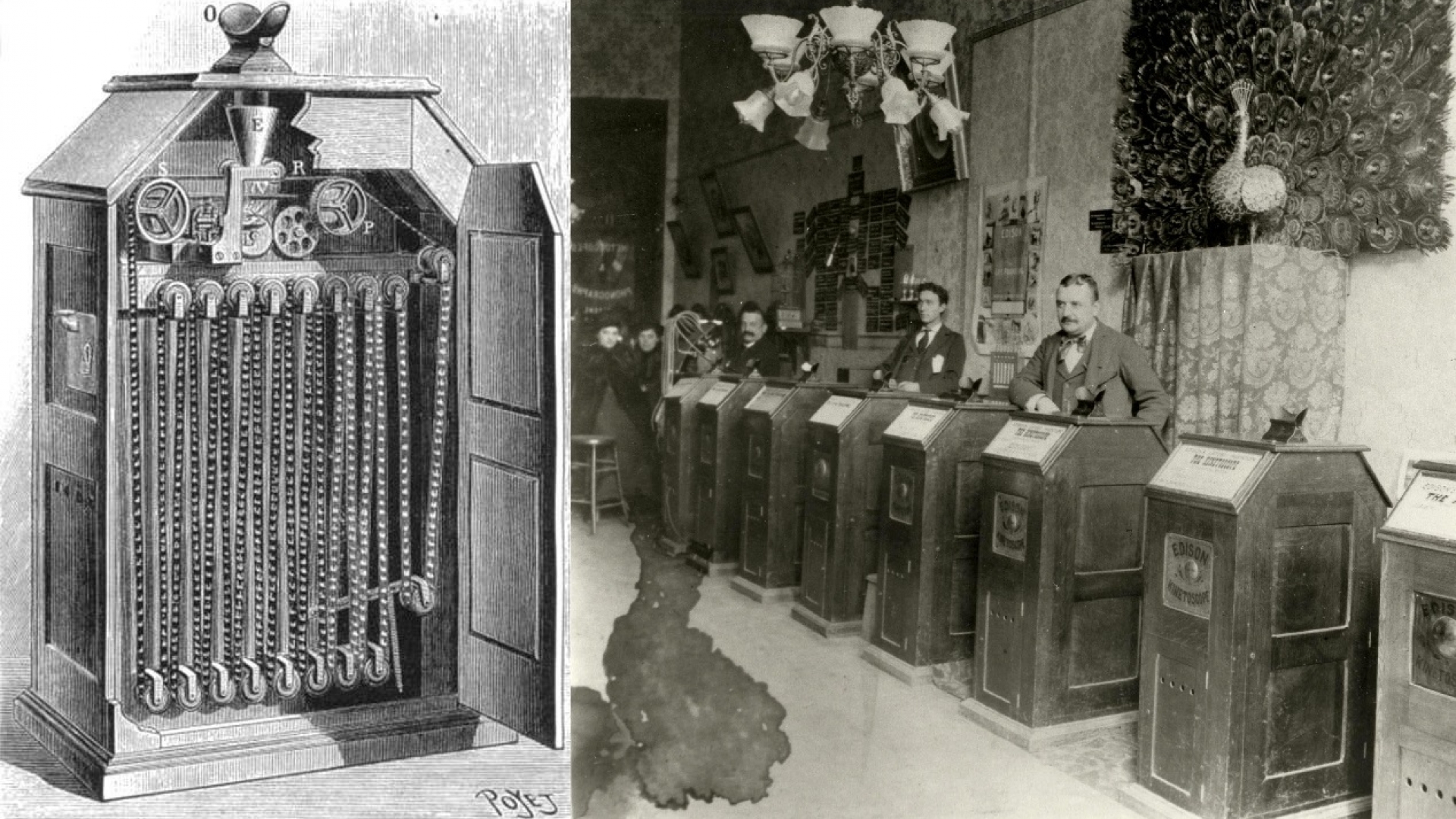 Von einem Kino ist Edisons Filmtechnik aber noch weit entfernt. Denn die Kinetoskope projizieren den Film nicht an eine Wand. Stattdessen kann man die Filme nur durch ein kleines Guckloch im Kinematoskop-Kasten sehen. Ein gemeinsamer Filmgenuss ist daher noch nicht möglich.