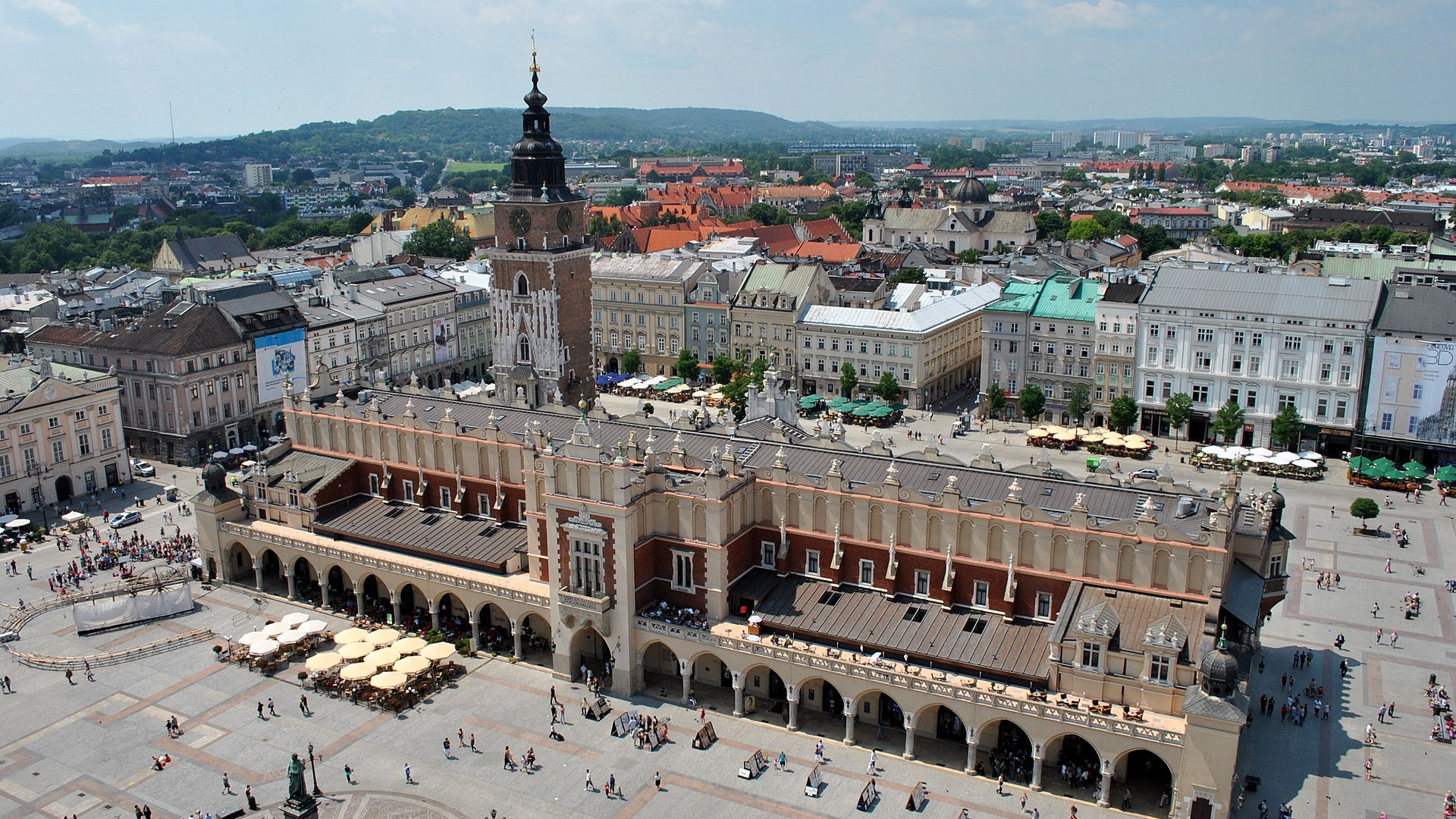 Die Erkundung dieser geschichtsträchtigen Kulisse beginnt typischerweise rund um den weitläufigen Hauptmarkt, den Rynek – einem der größten Marktplätze Europas. In der Mitte des 200 mal 200 Meter messenden Platzes stehen die Tuchhallen. Früher stellten hier Kaufleute aus aller Herren Länder ihre Waren aus. Heute wird in dem Renaissancebau Kunsthandwerk aus ganz Polen dargeboten: von schlesischem Kristall bis zu baltischem Bernstein.