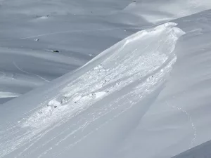 Am größten ist das Lawinenrisiko jedoch an Hängen mit einer Neigung zwischen 35 und 50 Grad. Denn hier entstehen durch das Gewicht der Schneedecke große Zug- und Scherkräfte, die den Zusammenhalt der Schneeschichten beeinträchtigen. In einem solchen Lawinenhang genügen dann oft schon kleine zusätzliche Belastungen, zum Beispiel das Gewicht eines einzelnen Skiläufers, um das Gleichgewicht zu zerstören und eine Lawine auszulösen. Besonders heikel wird es, wenn der Wind an einem solchen Hang dicke Schneewächten angesammelt hat: Dieser Triebschnee ist oft der Ausgangspunkt von Lawinen.