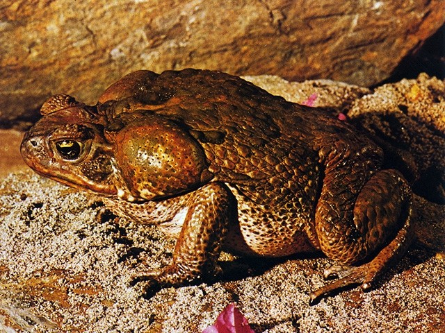 Sehr anpassungsfähig ist die Agakröte. So jagt sie selbst in Ortschaften unter Straßenlaternen eifrig Nachtinsekten.