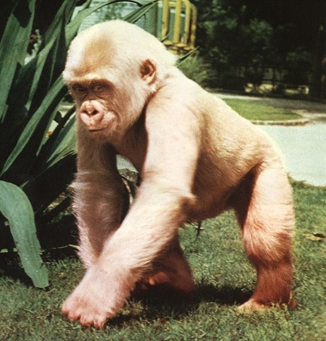 Die bei den Gorillas gelegentlich auftretenden Albinos überleben in der freien Natur meist nicht lange, da sie empfindlicher und für Feinde auffälliger sind als ihre normal gefärbten Artgenossen.