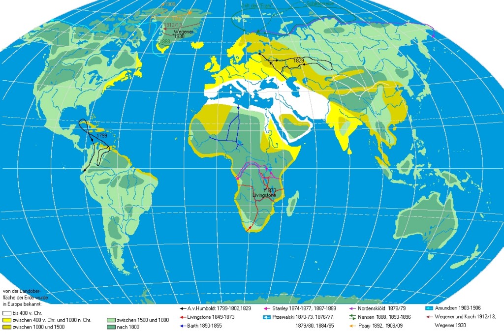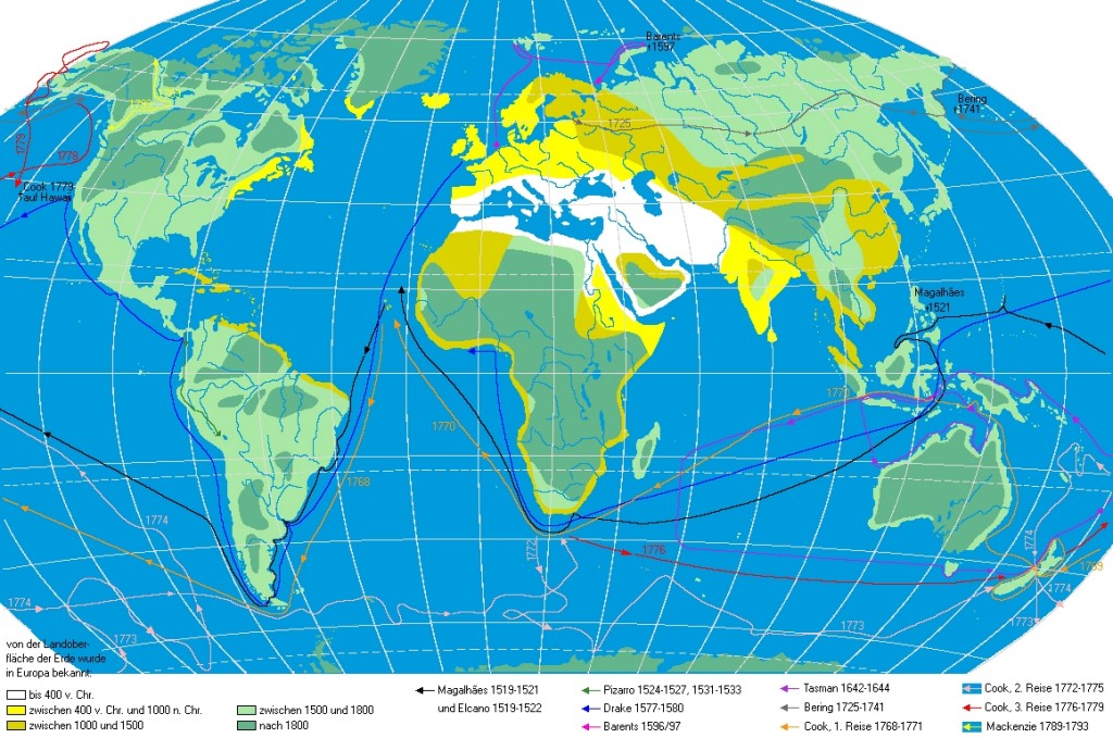 Im 16. Jahrhundert eroberten vor allem Spanier weite Gebiete Süd- und Mittelamerikas (H. Cortez, F. Pizarro). 1513 erreichte V. N. de Balboa über die Landenge von Panama den Pazifischen Ozean. F. Magellan entdeckte 1519/20 die nach ihm benannte Straße zwischen Südamerika und Feuerland. In Nordamerika drangen zunächst Holländer und Franzosen, später Engländer weiter ins Innere vor. Der deutsche Kartograph M. Waldseemüller schlug 1507 vor, den neu entdeckten Erdteil nach Amerigo Vespucci zu benennen, einem italienischen Seefahrer, der um 1500 mehrfach die Küsten Amerikas bereist hatte und dessen Entdeckungsberichte in Europa weite Verbreitung gefunden hatten.
