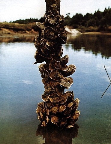 Miesmuscheln werden an senkrecht ins Wasser gehängten Leinen gezogen, an denen sie sich festspinnen; diese vertikal gezogenen Muscheln wachsen besser und sind sandfrei. Ähnlich werden in Küstengewässern auch Austern gezogen. Ein besonderer Zweig der Muschelzucht ist die Zucht von Perlaustern. Zuchtperlen aus Japan zählen zu den bekanntesten Produkten der Aquakultur.