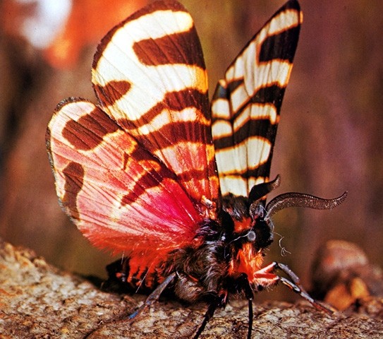Viele Arten der Bärenspinner sind giftig oder ungenießbar. Sie sind dann so auffällig gefärbt, dass sich ihr Aussehen bei einem Angreifer, der schlechte Erfahrungen gemacht hat, sozusagen als negatives Suchbild gut einprägt. Hier Eucharia festiva.