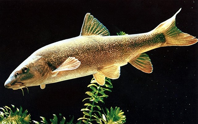 Kennzeichen der Flussbarbe sind ihre verlängerte Schnauze, das unterständige Maul und vier Bartfäden am Oberlippenrand.