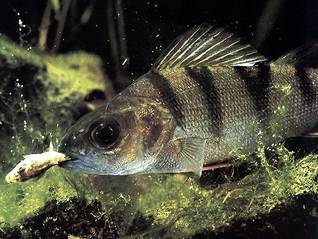 Der Flussbarsch (Perca fluviatilis) ernährt sich räuberisch. Besonders gerne verspeist er Fische, wobei er auch die eigene Art nicht schont.