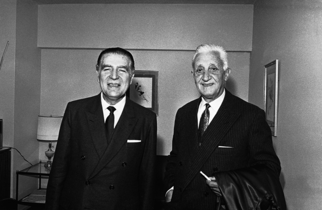 Der 1968 vom Militär gestürzte peruanische Präsident Fernando Belaúnde (links) zusammen mit dem argentinischen Präsidenten Arturo U. Illia