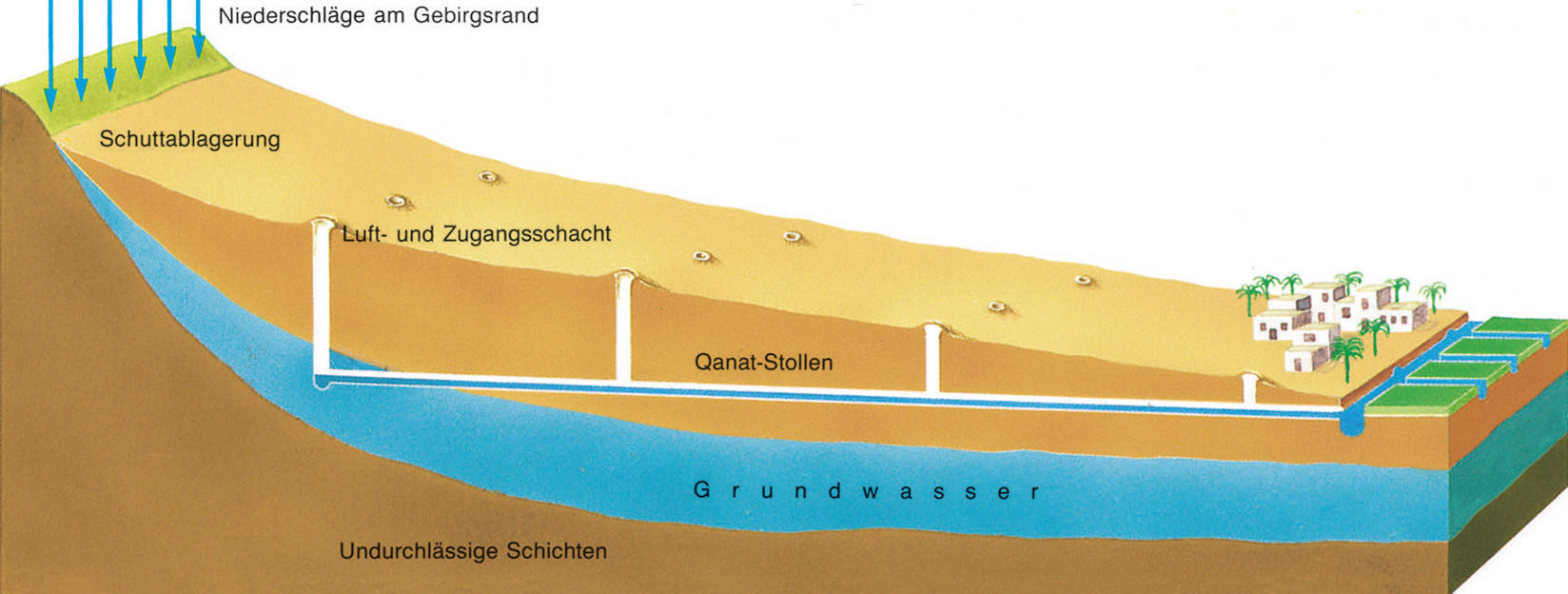 künstliche Zuführung von Wasser auf Äcker und Wiesen, um den Boden anzufeuchten, zu düngen und zu erwärmen. Bewässerungsarten: 1. Einstau, Grabenstau durch Stauvorrichtung in Wassergräben; 2. zeitweise Überstauung des Geländes innerhalb von Dämmen. Die mitgebrachten Sinkstoffe düngen den Boden. Geneigtes Gelände wird in Terrassen aufgeteilt. Hauptanwendung für Reis und Zuckerrohr; 3. Berieselung; 4. Beregnung mittels Pumpen und Streudüsen; 5. Absperren der Drainage-Rohre; 6. Verlegen durchlässiger Rohre im Boden, die mit Wasser beschickt werden. – Viele Talsperren und Stauseen dienen vor allem der Bewässerung. In ariden Gebieten kann durch fehlerhafte Bewässerung u. U. Bodenversalzung eintreten (Salinität).