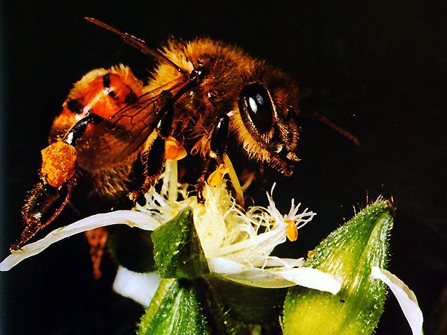 Neben Nektar sammelt die Honigbiene auch Pollen auf den Blüten, der als hochwertige Eiweißnahrung an die Larven verfüttert wird. Der aus dem Nektar hergestellte Honig dient vor allem als Kohlenhydratlieferant.