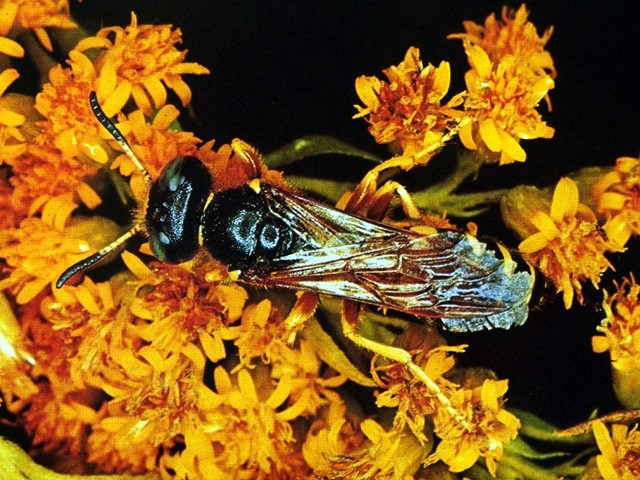 Wie alle Grabwespen versorgt auch der Bienenwolf (Philanthus triangulum) seine Brut mit Beutetieren. Er hat sich in dieser Hinsicht auf die Honigbiene spezialisiert, die er meist auf Blüten erbeutet.