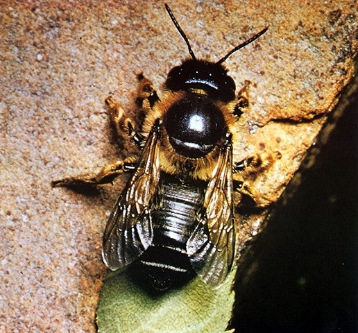 Mit passend zugeschnittenen Blattstückchen kleiden die Blattschneiderbienen (Megachile) ihre Brutzellen aus.