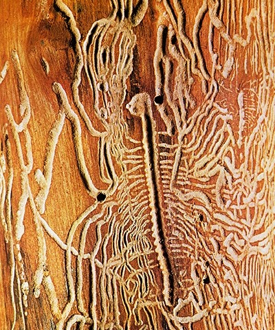 stammen vom Großen Obstbaumsplintkäfer (Scolytus mali), einem Vertreter