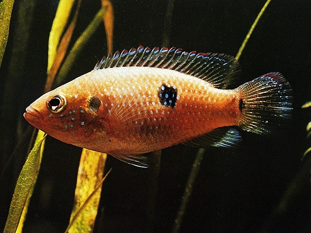 Der Rote Buntbarsch (Hemichromis bimaculatus) gehört während der Laichzeit zu den schönsten afrikanischen Buntbarschen.