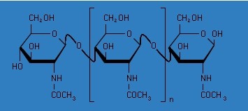 Die geraden Ketten bestehen aus N-Acetyl-D-Glucosamin-Resten und haben ein Molekulargewicht von etwa 400 000.