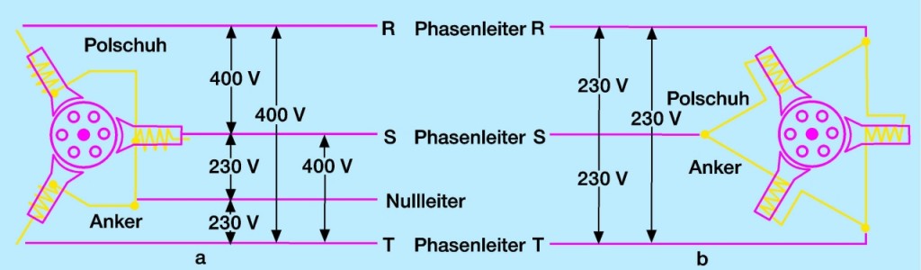Stern- und Dreieckschaltung einer Synchronmaschine