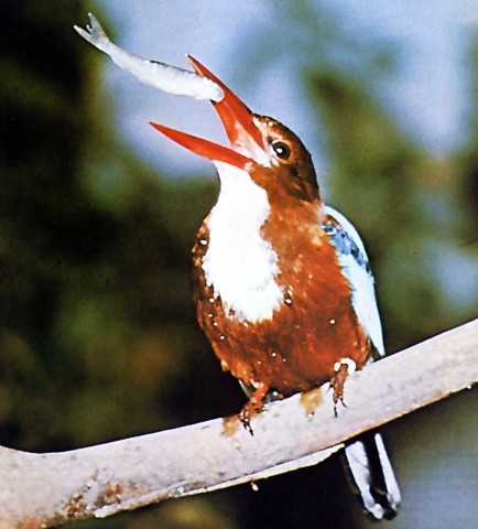 Wenn der Eisvogel einen Fisch am Schwanz erbeutet, wirft er ihn in die Luft und fängt ihn geschickt umgekehrt wieder auf, so dass er ihn mit dem Kopf voraus verschlucken kann.