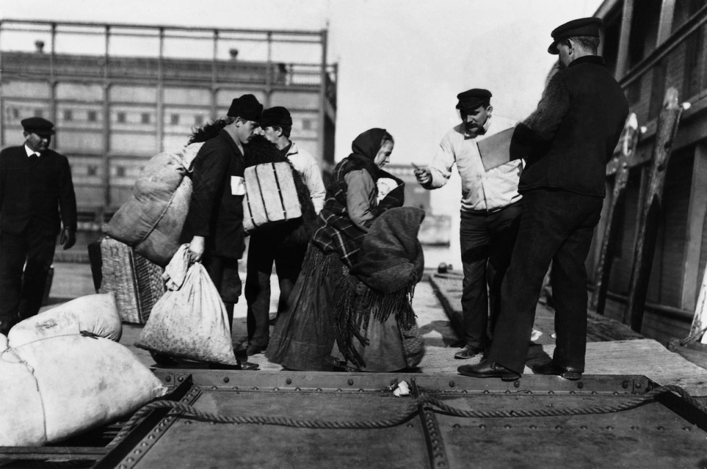 Immigranten bei der Ankunft auf Ellis Island Anfang des 20. Jahrhundert