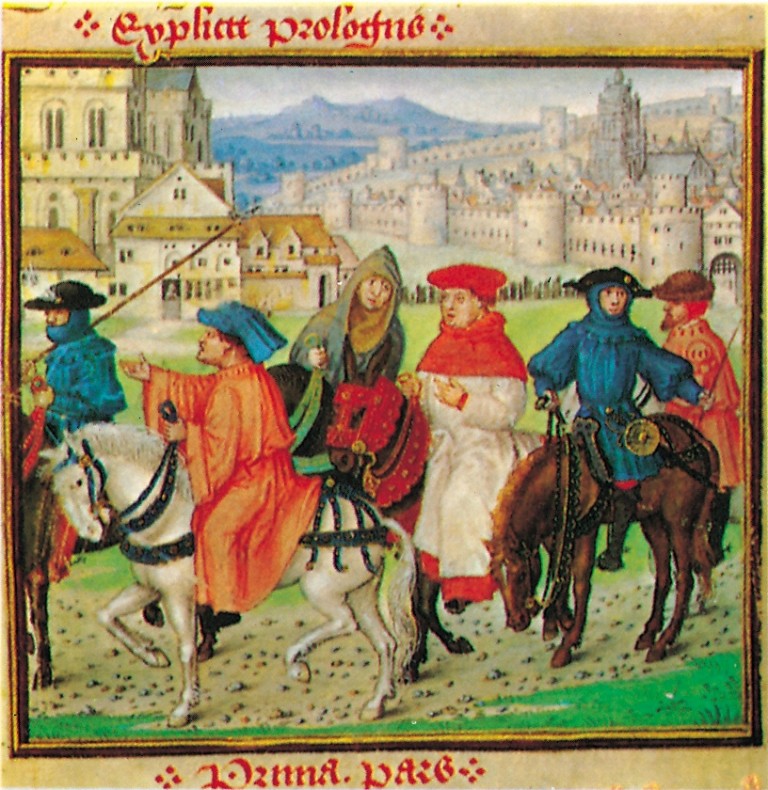 Illustration zu Geoffrey Chaucers »Canterbury Tales«, flämische Miniatur um 1500. London, British Museum