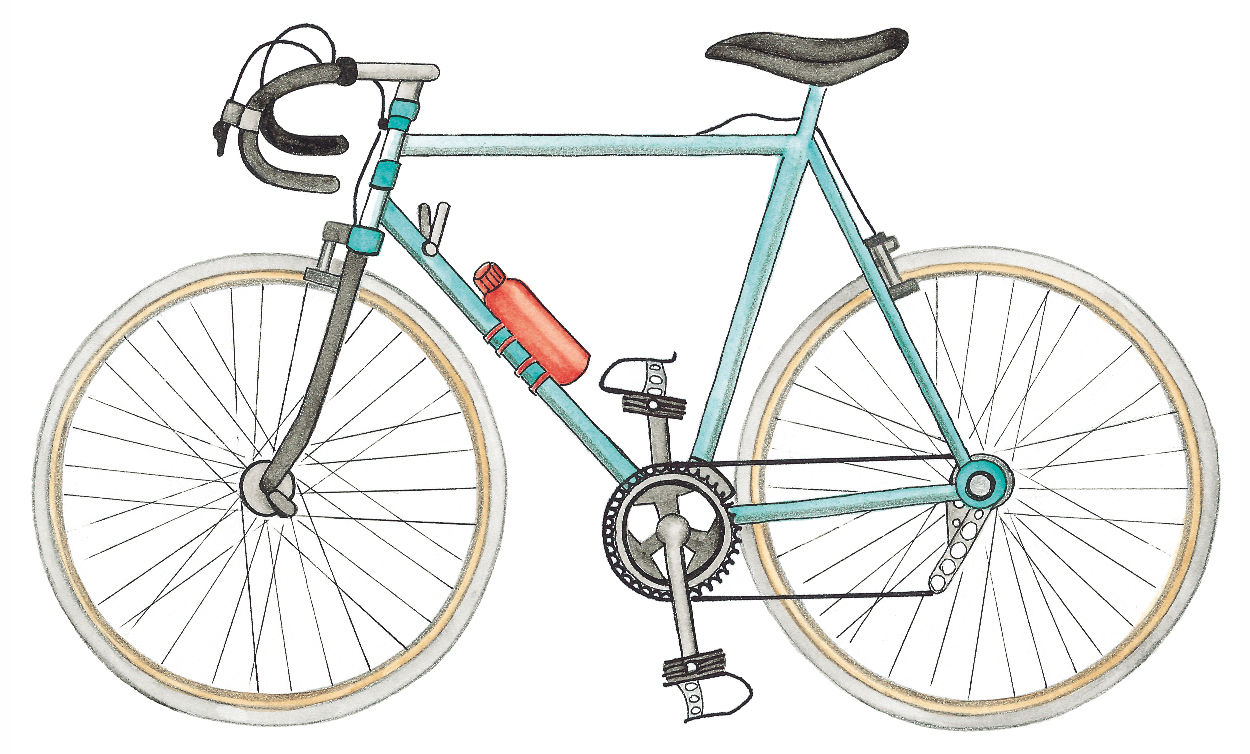 einspuriges Straßenfahrzeug mit zwei Rädern, angetrieben durch Muskelkraft. Die Technik des Radfahrens besteht in der Aufrechterhaltung des Gleichgewichts durch Lenken mit dem Vorderrad. Ein Fahrrad besteht aus dem Rahmen, den Rädern, der Lenkvorrichtung, dem Antrieb, den Bremsen, dem Sitz und dem Zubehör. Die Räder bestehen aus den Naben, den Drahtspeichen, den Felgen aus Stahl oder Leichtmetall und der Bereifung. Das Vorderrad ist von der Lenkgabel gefasst, die im Steuerkopfrohr des Rahmens drehbar gelagert ist und durch die Lenkstange gedreht werden kann. Zum Antrieb dient die Tretkurbel, die über eine Kettenradübersetzung auf das Hinterrad wirkt, das sich mittels der Freilaufnabe (Freilauf) auch bei stillstehender Tretkurbel frei drehen kann. Zur besseren Anpassung der Tretkraft an den Fahrwiderstand benutzt man veränderliche Übersetzungen (Gangschaltungen: Ketten- und Nabenschaltungen). Gebräuchliche Bremsvorrichtungen sind: Felgenbremsen; Nabenklotzbremsen; am wirksamsten in Verbindung mit der Freilaufnabe: Rücktrittbremsen, die auf einen Kegel oder die Innenwand der Hinternabe wirken; Scheibenbremsen, die hauptsächlich am Vorderrad eingesetzt werden, da beim Bremsen eine Gewichtsverlagerung nach vorne stattfindet; Hydraulik-Bremsen, die sich für Schnellfahrer eignen. Wichtiges, durch Verkehrsvorschriften angeordnetes Zubehör: Scheinwerfer, Rücklicht, Frontreflektor, zwei Heckreflektoren und Speichenreflektoren.
